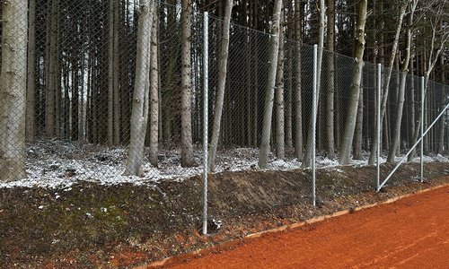 Diagonalgeflecht verzinkt mit Rohrpfosten verzinkt einbetoniert |