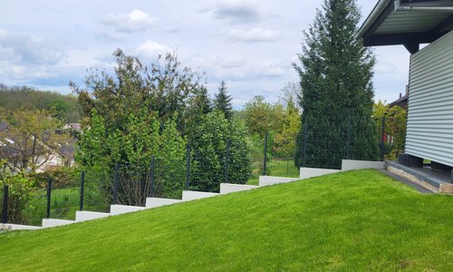 Doppelstabmatten schwer vorverzinkt und anthrazit beschichtet mit Pfosten 40x60 mit Abdeckleistenmit Fussplatte |