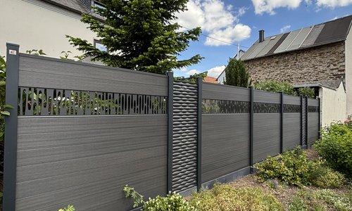 System WPC Sichtschutz, Platinum mit Alupfosten einbetoniert |