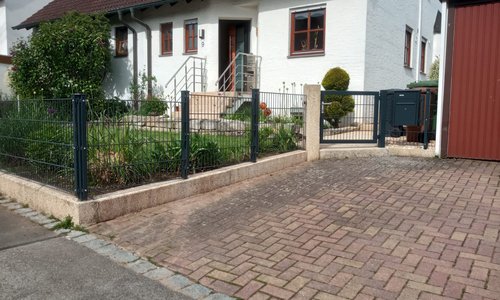 Doppelstabmatten schwer feuerverzinkt und anthrazit beschichtet mit Pfosten 60 x 40 mit Abdeckleisten in Aussparung |