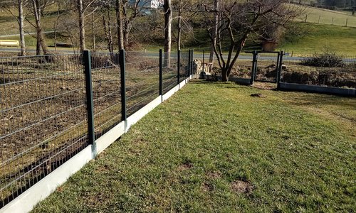 Doppelstabmatten leicht vorverzinkt und anthrazit beschichtet mit Pfosten Vario einbetoniert |
