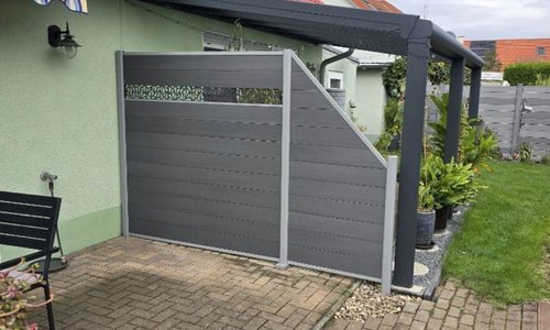 System WPC Sichtschutz, Platinum mit Alupfosten einbetoniert |