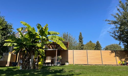 System WPC Sichtschutz, Neo Platinum mit Alupfosten einbetoniert |