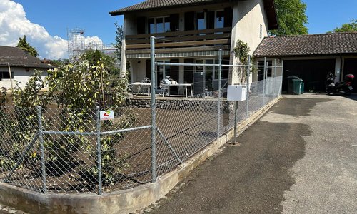 Diagonalgeflecht verzinkt mit Rohrpfosten verzinkt in Aussparung (CH) |