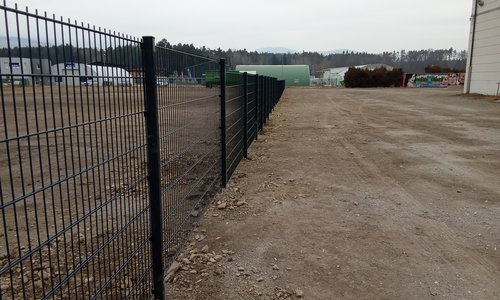 Doppelstabmatten schwer vorverzinkt und anthrazit beschichtet mit Pfosten Vario einbetoniert |