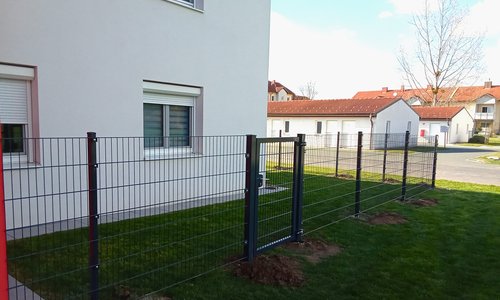 Doppelstabmatten leicht feuerverzinkt und anthrazit beschichtet mit Pfosten Vario einbetoniert |