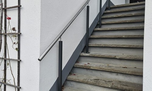 Edelstahl Handlauf geneigt mit Fussplatte |