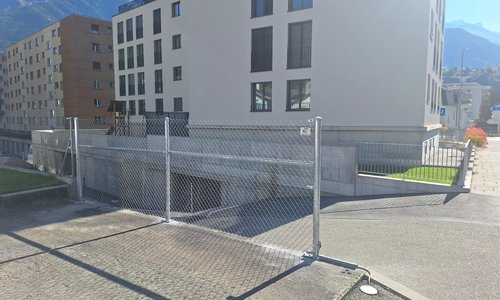 Diagonalgeflecht verzinkt mit Rohrpfosten verzinkt mit Fussplatte (CH) |
