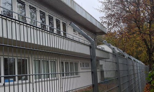 Doppelstabmatten schwer verzinkt mit Pfosten 40x60 verzinkt mit Abdeckleisten einbetoniert |