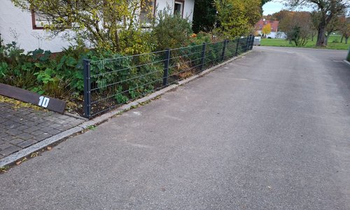 Doppelstabmatten leicht feuerverzinkt und anthrazit beschichtet mit Pfosten 60 x 40 mit Abdeckleisten einbetoniert |