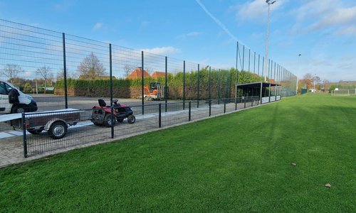 | Fence type: | Ballfang Doppelstab mit Pfosten grün und Abdeckleisten |