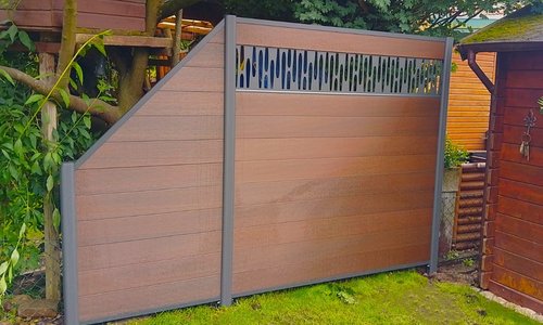 System WPC Sichtschutz, Platinum mit Alupfosten einbetoniert |