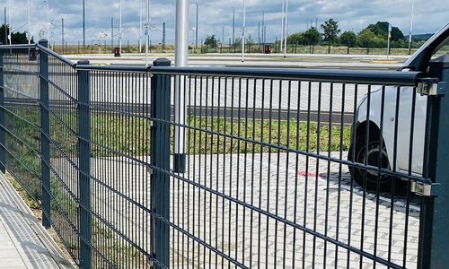 Doppelstabmatten schwer vorverzinkt und anthrazit beschichtet mit Pfosten Vario einbetoniert |