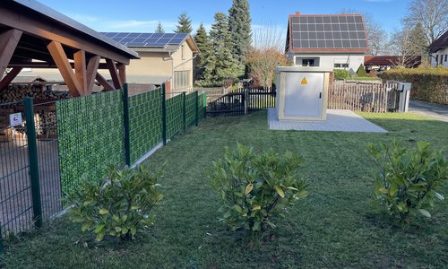 Doppelstabmatten leicht feuerverzinkt und grün beschichtet mit Pfosten Vario einbetoniert |
