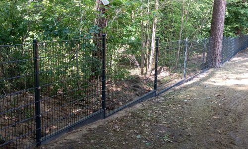 Doppelstabmatten leicht vorverzinkt und anthrazit beschichtet mit Pfosten Vario einbetoniert |