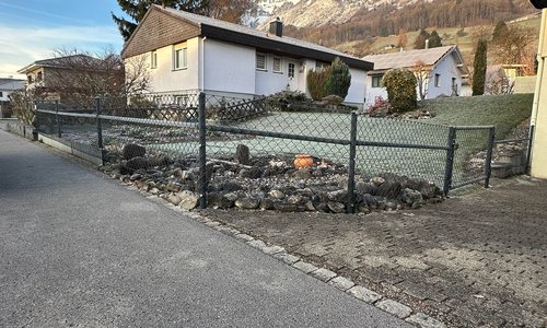 Diagonalgeflecht anthrazit mit Rohrpfosten anthrazit einbetoniert |