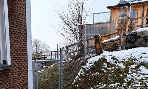 Diagonalgeflecht verzinkt mit Rohrpfosten verzinkt einbetoniert |