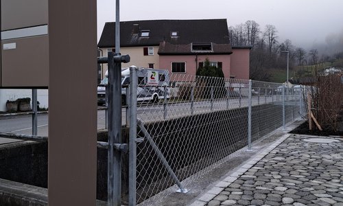 Diagonalgeflecht verzinkt mit Rohrpfosten verzinkt mit Fussplatte (CH) |
