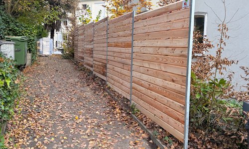 Sichtschutz aus Bohlen mit Zwischenraum mit U-Stahl Profil Pfosten |