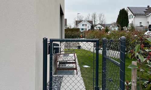 Diagonalgeflecht anthrazit mit Rohrpfosten anthrazit einbetoniert |