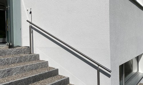 Edelstahl Handlauf geneigt einbetoniert |