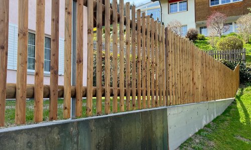 | Projekt: | Palisadenzaun Höhe 120cm Kopfform rund |