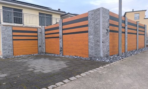 Alu Varioprofil glatt mit Zwischenfüllung breit mit Aluminiumpfosten vierkant 85 x 85 mm einbetoniert |