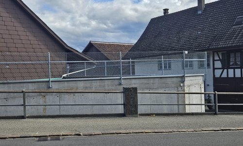 Diagonalgeflecht verzinkt mit Rohrpfosten verzinkt mit Fussplatte (CH) |