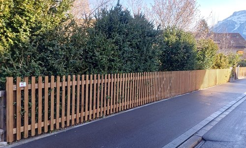 Auf Kundenwunsch wurden die Staketen mit dem runden Kopf nach unten montiert.