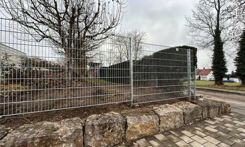 Doppelstabmatten schwer verzinkt mit Pfosten 40x60 verzinkt mit Abdeckleisten einbetoniert |