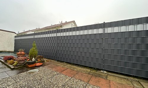 Doppelstabmattenzaun mit Sichtschutzstreifen |