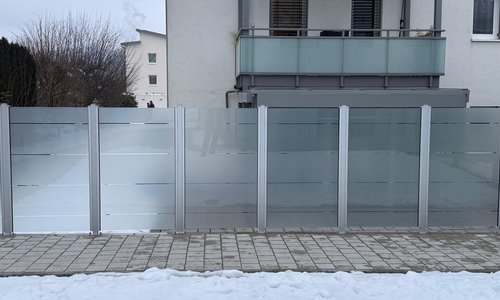 | Fence type: | Glas Sichtschutz mit vierkant Aluminium-Nutpfosten mit Fussplatte |