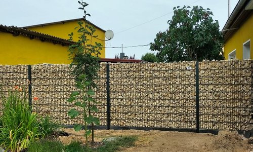 | Fence type: | Gabionen mit vierkant Stahlpfosten |