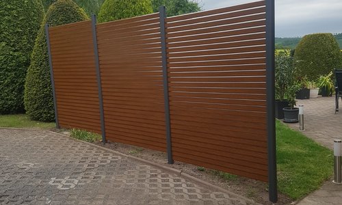 | Fence type: | System Alu Sichtschutz, Rhombus mit Alupfosten einbetoniert |