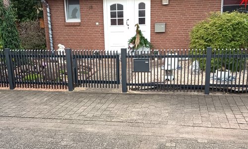 | Fence type: | Staketen Aluzaun einbetoniert |