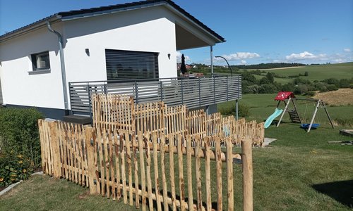 Naturzaun mit Türe dem Gelände angepasst montiert