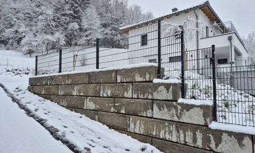 | Fence type: | Doppelstabmatten schwer vorverzinkt und anthrazit beschichtet mit Pfosten 60 x 40 mit Abdeckleisten einbetoniert |