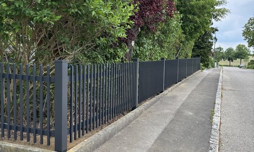 | Fence type: | Staketen Aluzaun einbetoniert |