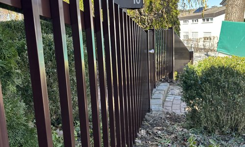 | Fence type: | Staketen Aluzaun einbetoniert |