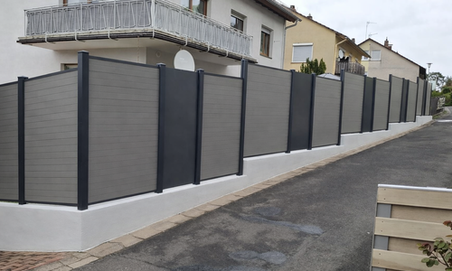 System WPC Sichtschutz, Classic mit Alupfosten mit Fussplatte |