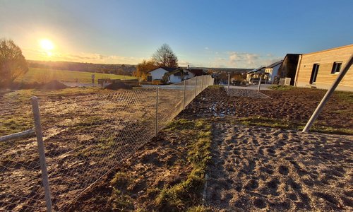 Diagonalgeflecht verzinkt mit Rohrpfosten verzinkt einbetoniert |