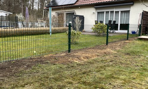Doppelstabmatten leicht feuerverzinkt und grün beschichtet mit Pfosten Vario einbetoniert |