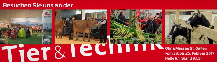 Vom 23. bis 26. Februar 2017 begrüsst Sie Zaunteam in der Halle 9.1, Stand 9.1.31 an der Tier & Technik auf dem Messegelände in St. Gallen.